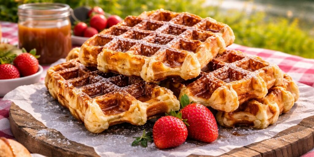 Les gaufres de Liège sont une véritable icône de la gourmandise belge. Originaires de la région de Liège, elles sont reconnaissables à leur forme irrégulière et à leurs perles de sucre caramélisées. Contrairement aux gaufres de Bruxelles, elles sont plus denses et plus sucrées. Elles se dégustent facilement avec les doigts. C’est l’allié parfait d’un pique-nique sans contrainte.