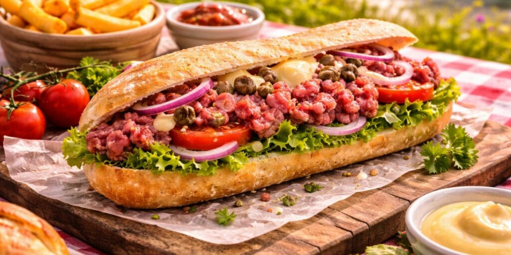 Le sandwich américain est une spécialité bien connue en Belgique. Il se compose généralement de steak haché cru assaisonné, accompagné de crudités. Servi dans une baguette croustillante, il est riche et savoureux. Pour un pique-nique, il peut être préparé le jour même. Il apporte une touche originale au repas.
