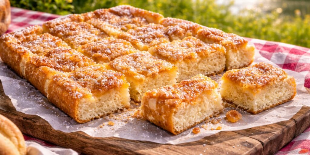 La tarte au sucre est une spécialité emblématique de la Belgique, particulièrement appréciée en Wallonie. Sa texture moelleuse et sa garniture fondante en font un dessert simple et généreux. Elle se découpe facilement en carrés ou en parts, ce qui la rend idéale à partager sur une nappe de pique-nique. Elle ne nécessite ni assiette sophistiquée ni présentation complexe. C’est un choix pratique et gourmand.