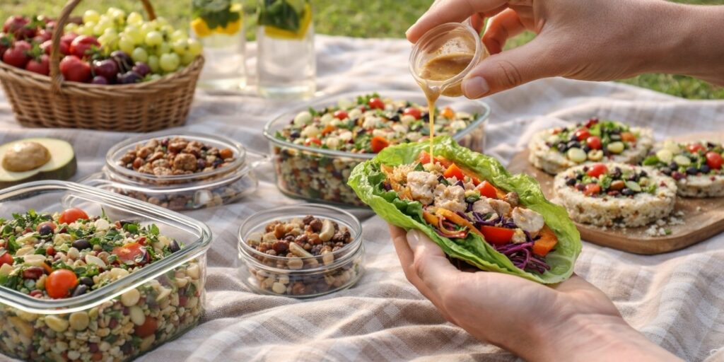 Voici différentes bases originales et savoureuses pour construire des wraps, des bouchées ou des portions individuelles, parfaites pour un pique-nique réussi.